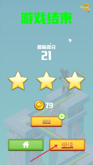 3、完成关卡后,若想继续挑战,点击【继续】按钮,可进入下一轮游戏。