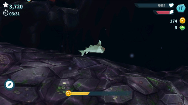 4、按住屏幕可以加速鲨鱼,同时也要注意不要吃到不能吃的东西;