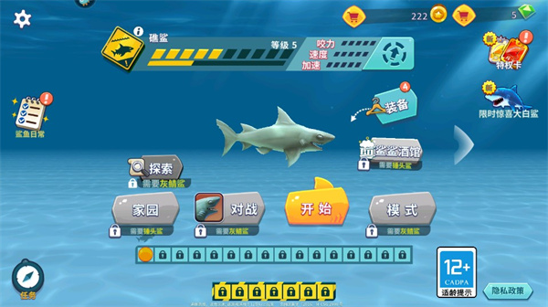 + 解锁鲨鱼幼仔来提升你的掠夺能力