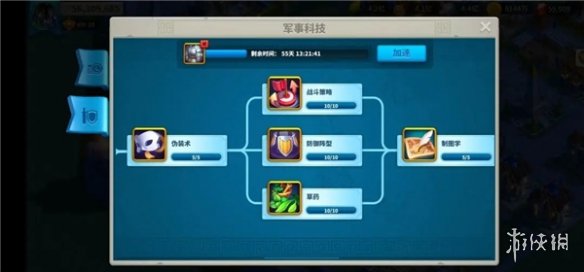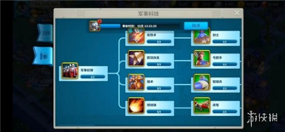 T4兵种研究的前置科技,需要三项全部满级才可以解锁,需要很长时间。