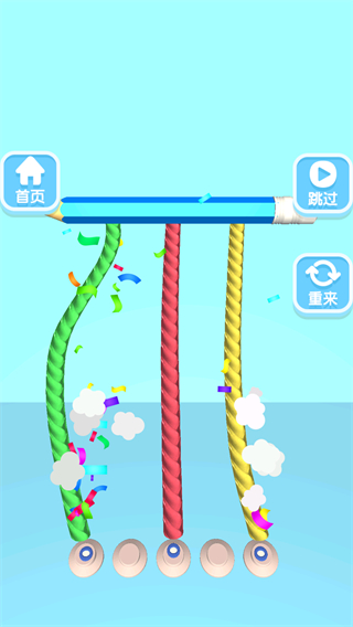 1. 解开绳结:根据关卡要求,在限定时间内用手指滑动、拉扯等方式解开各种纷繁复杂的绳结。