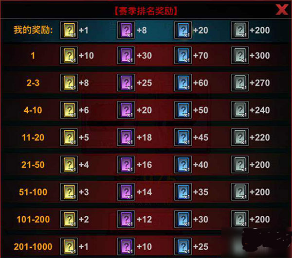 玩家通过每天限制的对战次数对战,胜者加杯,败者减杯,每周为一个赛季、每赛季结束都会得到排名奖励。