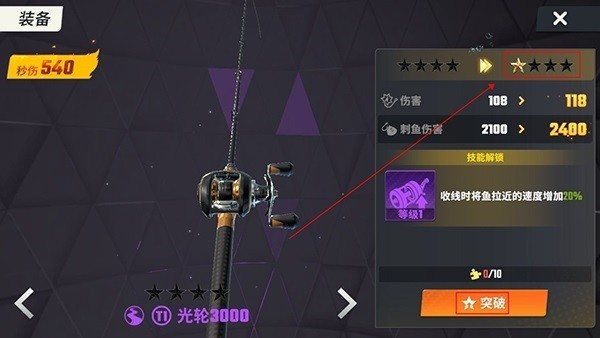 4、如果鱼竿的强度较低,也可以通过提升鱼竿的星级来鱼竿的综合强度。