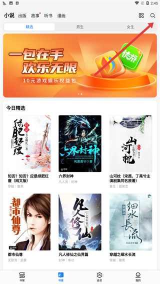 2、输入你想搜索的小说名称,在搜索结果里找到对应的目标小说。