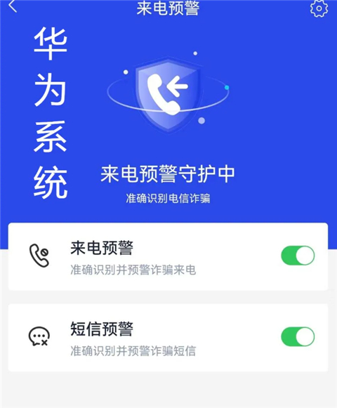 2、选择 “来电预警” 功能。打开 “来电预警” 和 “短信预警” 开关,隔绝诈骗信息。