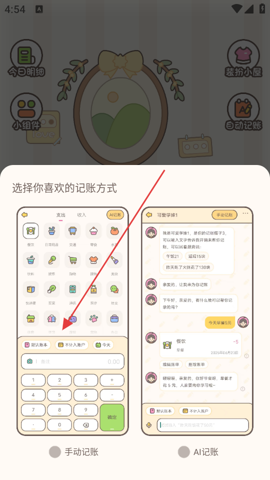 2、于选择界面,挑选心仪的记账方式,例如“手动记账”,即可进入记账编辑界面。