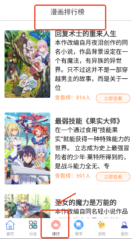 用户可在线查看各种漫画的详情简介,增加对各种漫画剧情的了解。