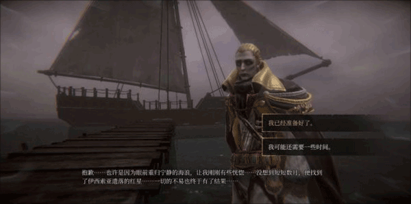 3、上船后是一段非常令人震撼的动画,我们的主角——泰伦斯所乘坐的船在途中被某些不可名状的深海巨兽所击沉,最后我们的泰老爷子一个人被冲了上岸,现在我们的主要目标就是和队友汇合,不过在汇合之前,请让我们先搜刮一番。