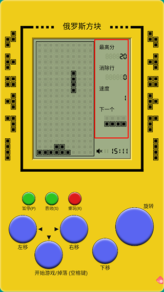 2、该游戏直接模拟了以前的游戏机,主要按键在下方;