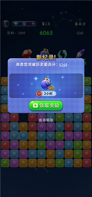 6、当你消除了新的游戏道具可以获得宝箱道具;