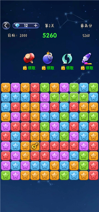 清新的面板设计,酷炫的游戏特效,星空场景,定会带你畅游在消除的星星世界中。