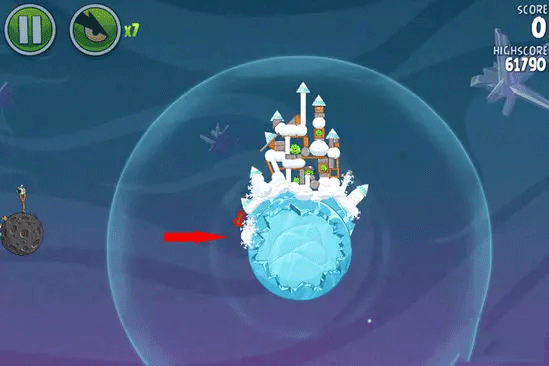 这一颗金蛋比前面的藏得更深,被埋在冰冻星球左侧的雪堆里。只要知道了位置,随便发射一只小鸟击中即可进入隐藏关。