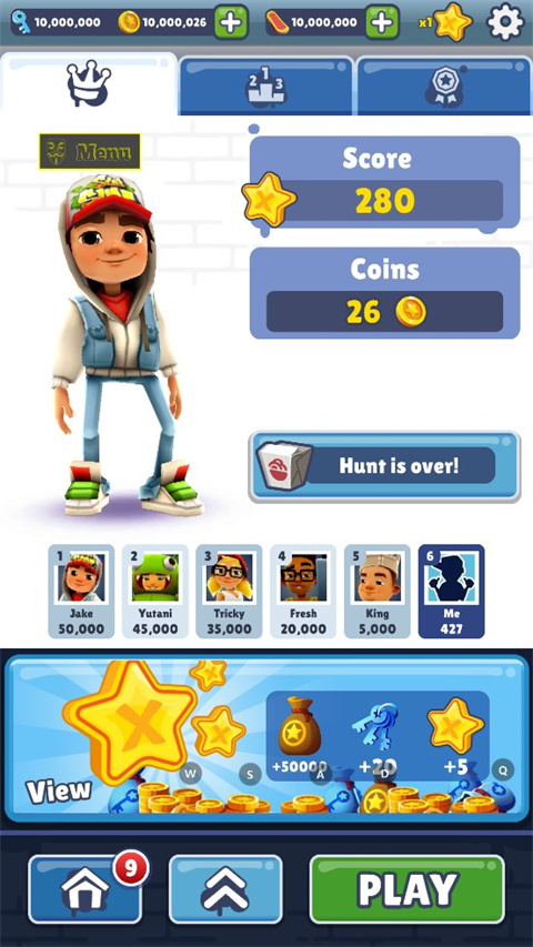 气垫滑板可使角色在一定时间内成为无敌状态,不会受到任何伤害影响。开启神秘宝箱可随机获得道具、金币或其他物品,建议玩家在资金充裕的情况下开启宝箱。抢跑道具可让玩家在游戏开始前抢先触发,这样便可获得较多积分。当你感觉某项任务难度太大,无法完成时,可以购买道具跳过该任务,不过小编建议玩家尽量不要使用该道具,因为任务系统是地铁跑酷十分重要的环节。