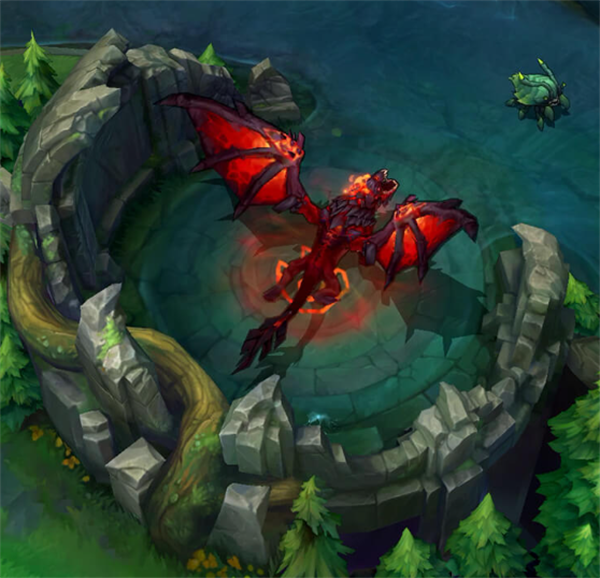 飞龙:飞龙是位于中路与飞龙路之间的最强大的中立资源。杀死飞龙的队伍可以依不同的飞龙类型取得维持整场游戏的相应增益效果。远古元素飞龙为增益效果最强大的飞龙,击杀远古巨龙后可获得远古之力,使用技能或普攻攻击敌方单位会触发燃烧效果,同时此飞龙所给予的元素增益是最强的。