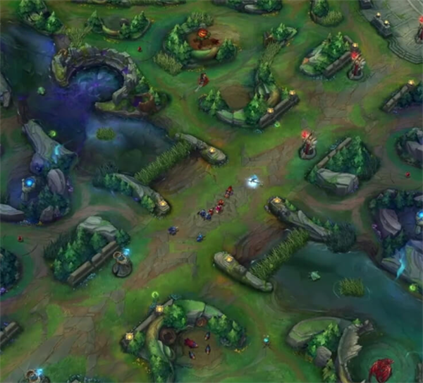 峡谷先锋:峡谷先锋位于河道左上方纳什男爵池内,玩家在击败峡谷先锋之后可以拾取峡谷先锋之眼,并可在路上召唤出峡谷先锋以协助队伍,拥有强大的推塔能力。