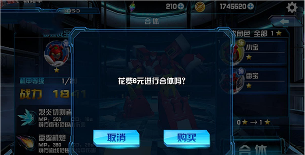 ③合体后的机甲需要进行升星,需要先将对应的子机甲全部升级到对应的星级。