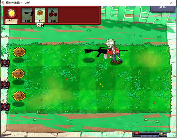 玩家防御僵尸的方式就是栽种植物,49种植物每种都有不同的功能,例如樱桃炸弹可以和周围一定范围内的所有僵尸同归于尽,而食人花可以吃掉最靠近自己的一只僵尸。