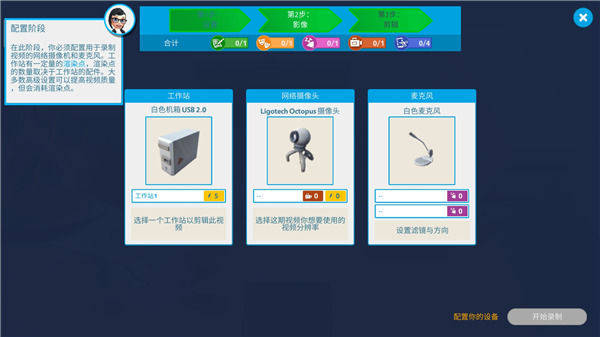 11、在配置阶段,你必须配置用于录制视频的网络摄像机和麦克风。工作站有一定量的渲染点,渲染点的数量取决于工作站的配件。大多数高级设置可以提高视频质量,但会消耗渲染点。