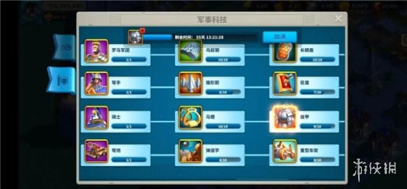 T4兵种研究的前置科技,需要三项全部满级才可以解锁,需要很长时间。