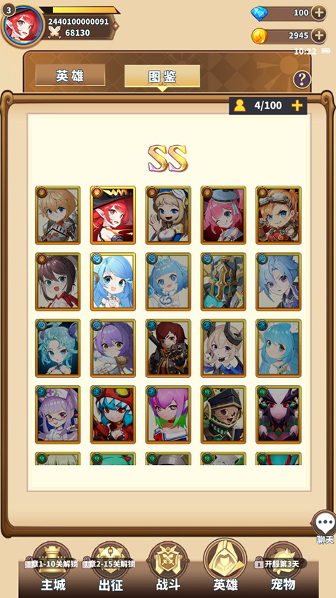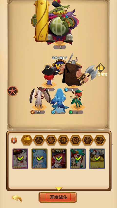 3、有了足够的英雄后即可自由搭配阵容开始关卡挑战啦。