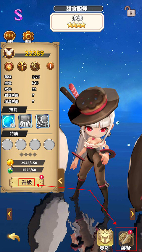 6、当提升到英雄等级上限后,即可使用进阶石给英雄升阶,提升各属性,解锁新技能。