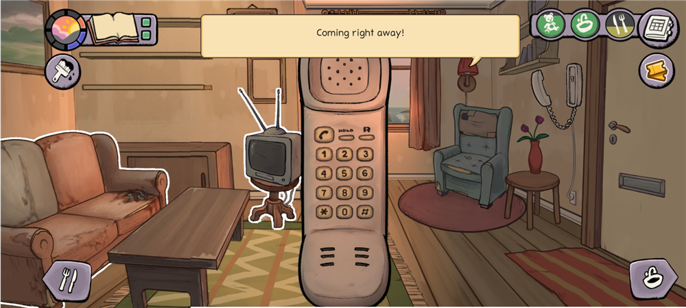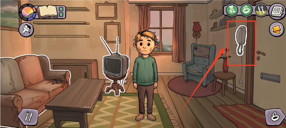 1、点击门旁边墙上的电话,选择第一个披萨的图标就可以开始点披萨外卖了,也能打电话给那你之后的朋友。