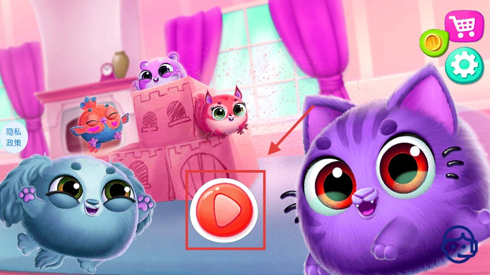 1、点击【红色-播放-按钮】进入游戏,开启萌宠饲养旅程,与可爱宠物互动经营小屋。