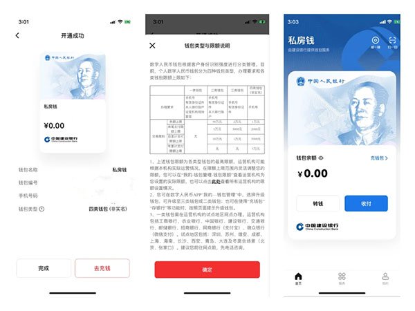通过应用商店就可下载数字人民币App,新用户注册过程中,无需输入姓名、身份证号、银行卡号等个人信息,仅通过手机号、设置密码、同意相关协议,就可以直接开通匿名钱包,整个过程流畅迅速,数秒内可完成,开通后可按需要升级为实名钱包。钱包设置了四类账户,一类账户什么都不限制,其他三类账户都有限制交易金额。