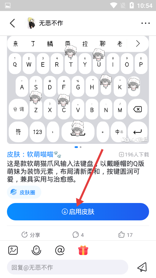 1、不仅如此,KK键盘还是一个抓呢的流行社交潮流社区,用户可以在这里分享自己的生活、交流感受、结交朋友。