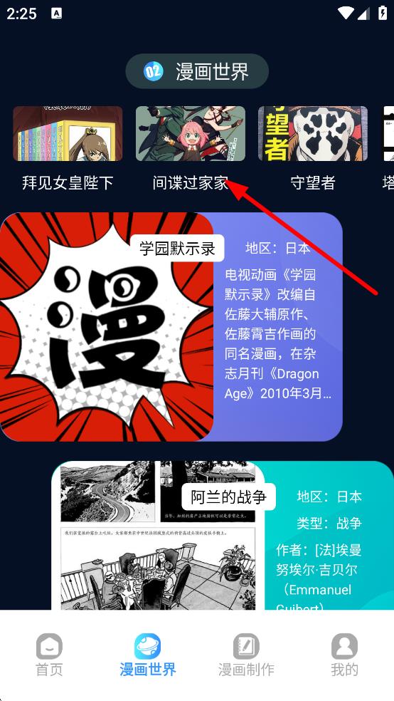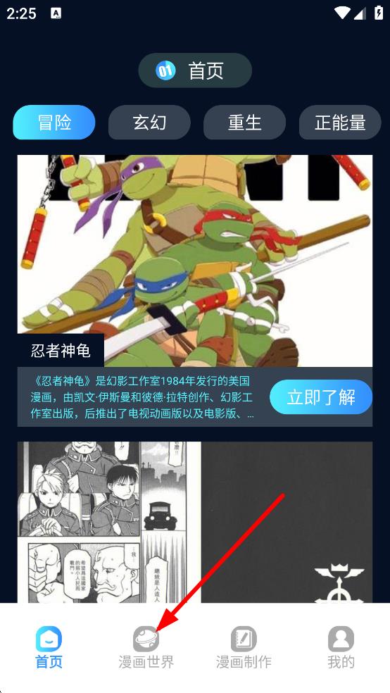 1. 轻点底部的漫画世界,即可进入漫画世界页面。