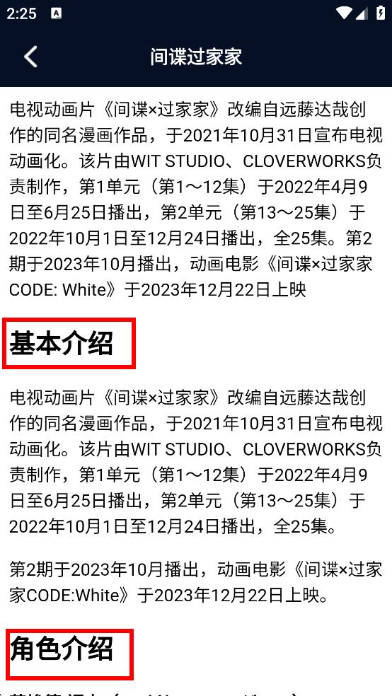 3、接下来在漫画详情页面,能够查看诸如基本介绍、角色介绍之类的内容。
