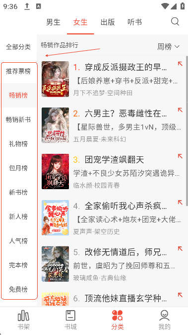 也可以在分类页面通过书籍分类和书籍排行来挑选自己喜欢的小说