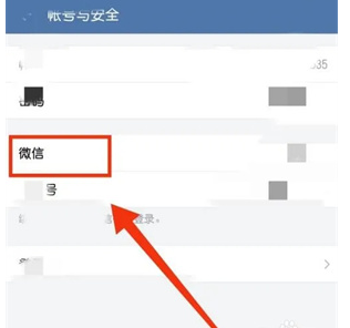 2、在账号与安全页面中选择微信。