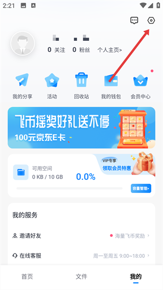 1、进入“我的”页面后,点击右上角的“设置”按钮,即可进入设置界面。