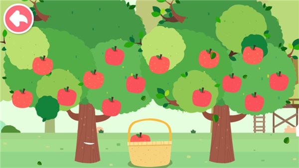 5、小河马遇到台风了,快来帮他一起摘下苹果回家;