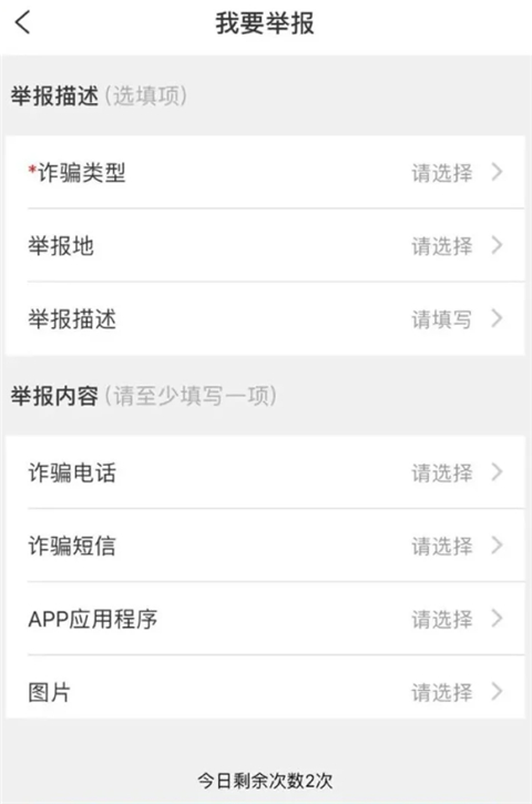 我要举报:用户可以在APP中举报任何非法可疑电信诈骗行为,如诈骗电话、短信、APP应用程序、图片、网址、社交账号、交易账户等,有效举报诈骗信息,防止更多人上当受骗。