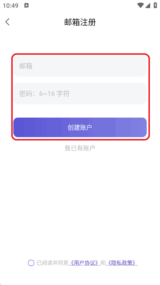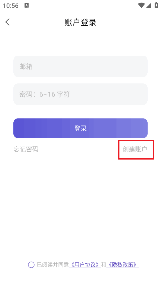 5输入邮箱和密码之后点击创建账户进行注册