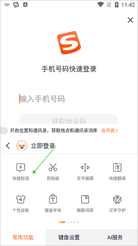 1、用户在输入文字时,可以在酷狗输入法键盘上点击左上角的logo图标(下图绿色箭头所指)