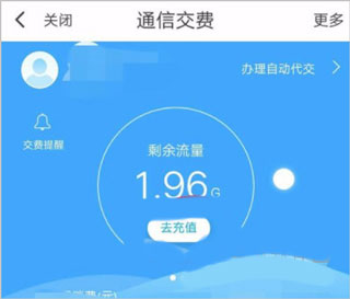 2、我们回到首页,在上面找到通信缴费,进入后,点击中间的去充值;