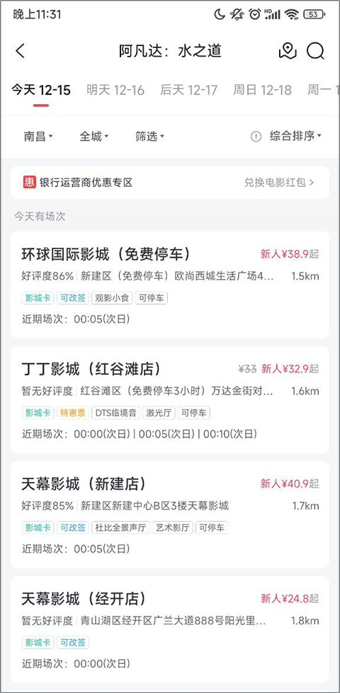 已经覆盖 300+ 城市,3000+ 影院,让你享受快速低价的购票体验。