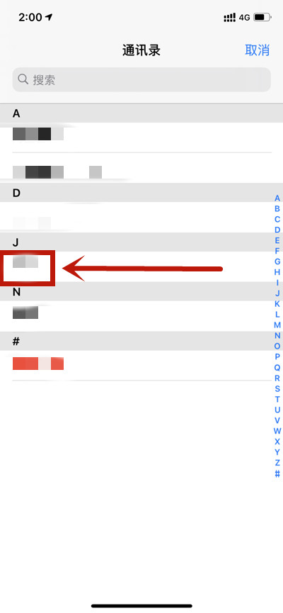 点击右边的通讯录选项,选择被叫人的手机号码。