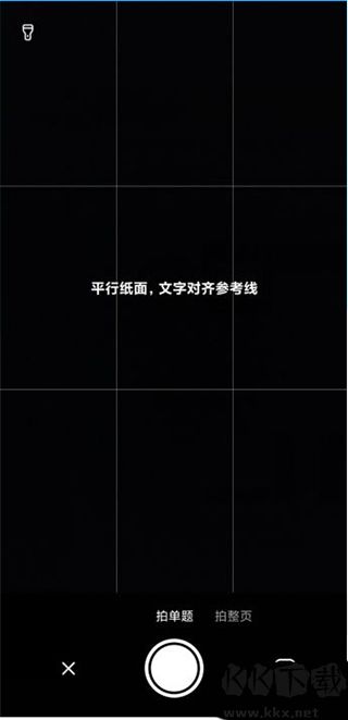 3、用手机摄像头对准题目使参考线平行于纸面文字,点击拍摄按钮。