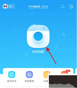1、在首页点击上方的拍照搜题按钮。